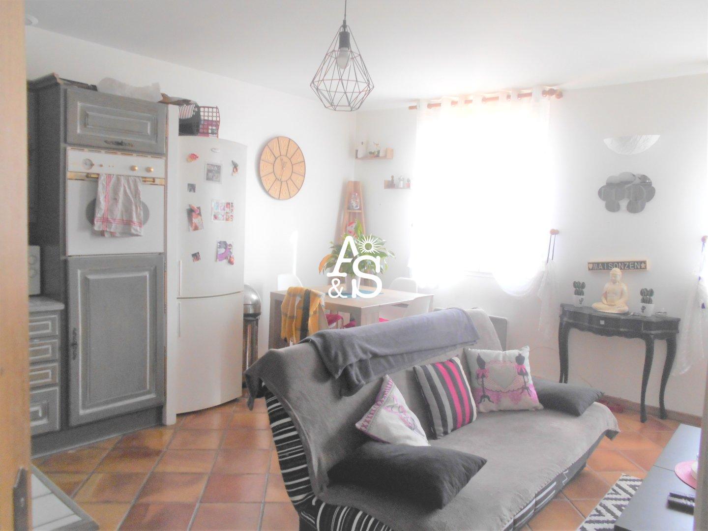 Organisée sur 2 niveaux elle dispose d'une entrée donnant accès au 1er étage. Celui-ci dispose d'une pièce à vivre avec coin cuisine aménagée et équipée (Plaque de cuisson + four). Au 2ème étage : 2 chambres avec rangements, salle d'eau, WC.
