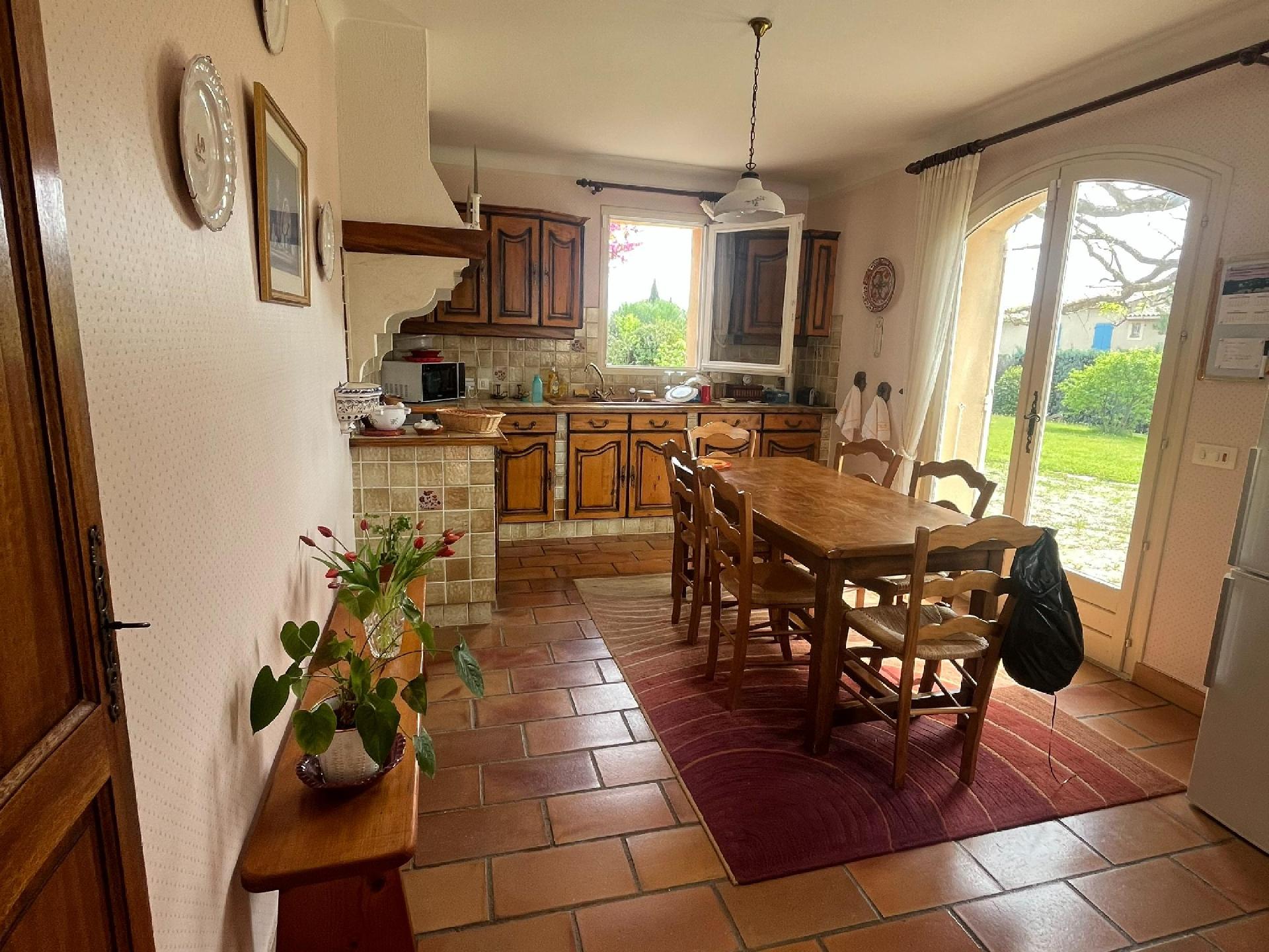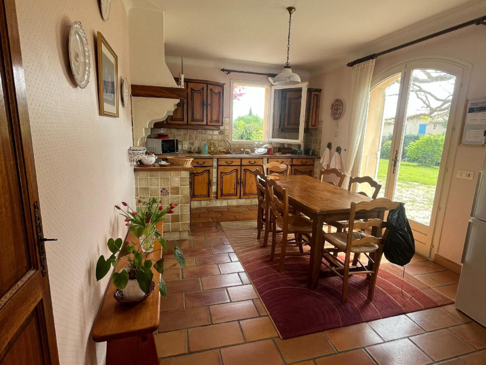 une cuisine aménagée indépendante, avec accès direct au jardin.